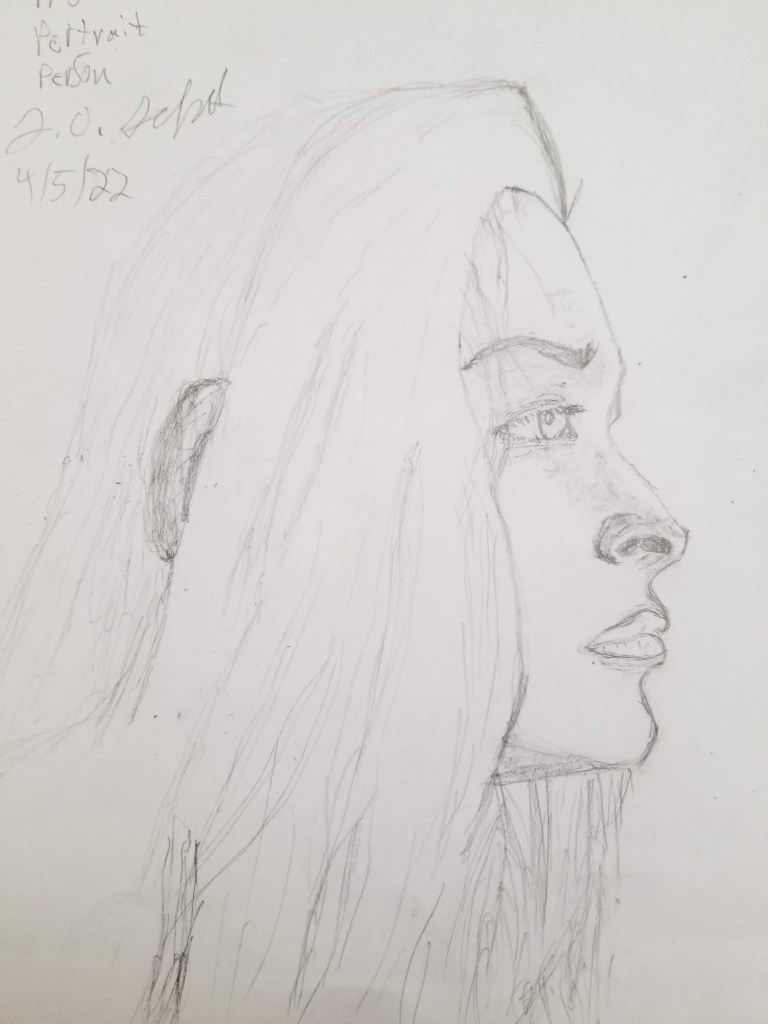 The new art. The hardest things to the throw away were my childhood arts and crafts. I kept most pieces that were hung on the wall, since I was just too emotionally attached (and there was plenty lower hanging fruit elsewhere). But I did toss a few shelf items. The silver lining of discarding old art is that it makes space for new, more mature work. Check out one of my latest profile portraits below. Not bad, right?!
