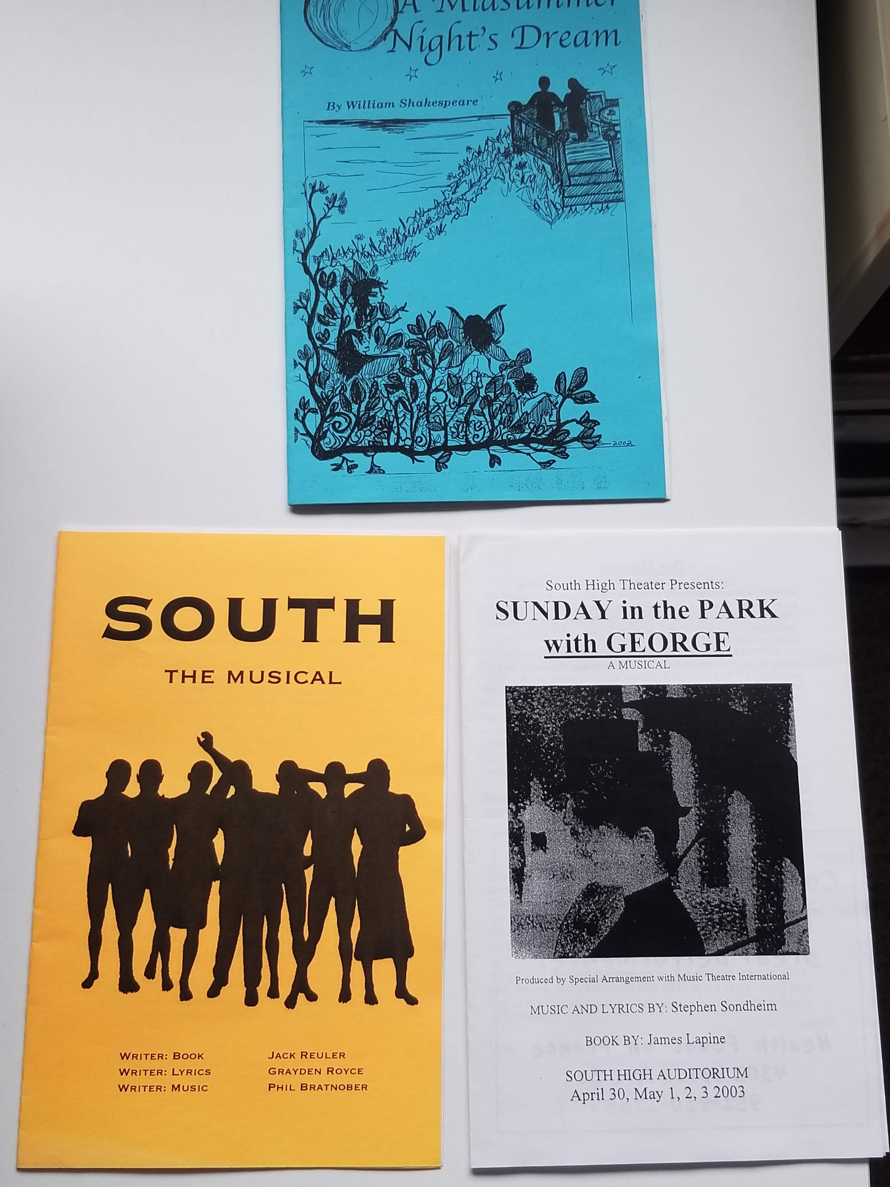 South High theater. I never got too involved with theater, but I enjoyed the powerhouse performances at my high school. Did you know that Josh Hartnett and Rachel Leigh Cook went to my school? Anyway, I got a kick out of finding these beautifully designed programs hidden away on a shelf. If I could go back in time, I would have talked one of my theater friends into letting me illustrate a program—or entering me into an approved apprenticeship course.